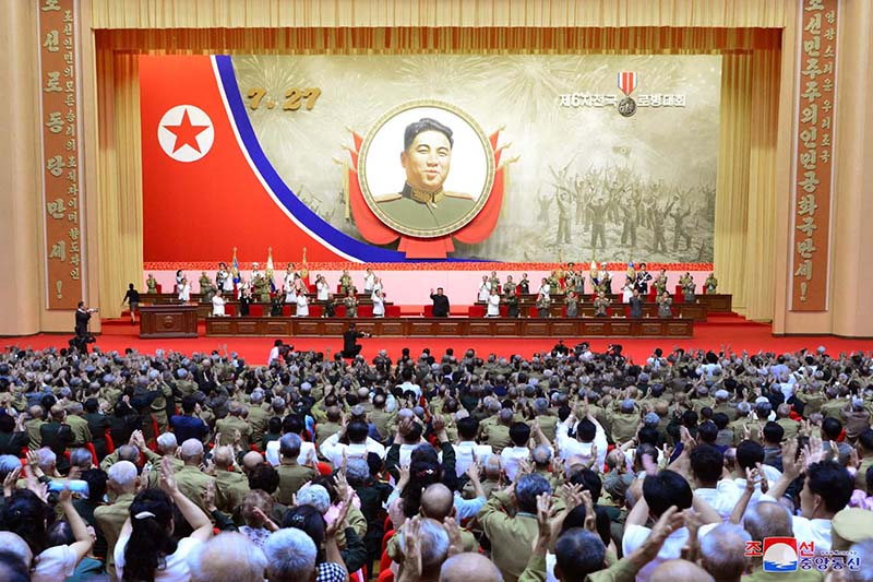 こうして、7月27日の戦勝デーを盛大に祝うのが伝統になり、昨年まで、7回の全国参戦老兵大会が開かれました。総書記は、参戦老兵に戦時のものと同じ軍服を所属の軍種別に作って着せれば、とても喜ぶだろう、その軍服を着て、勲章までつければ、イベントがより異彩を放つものになるだろうと言いました。そして、大会にも臨席して、参戦老兵の健康長寿を心から祈るお祝いの言葉も述べ、共に記念写真も撮りました。