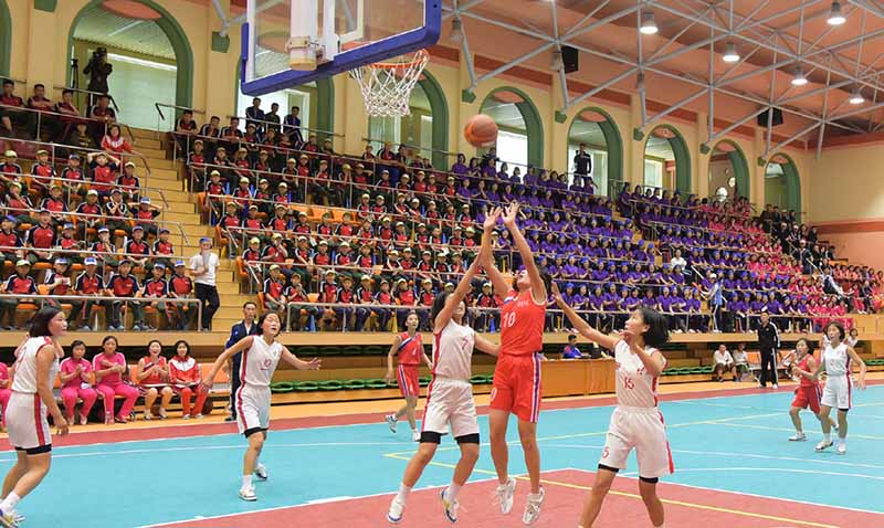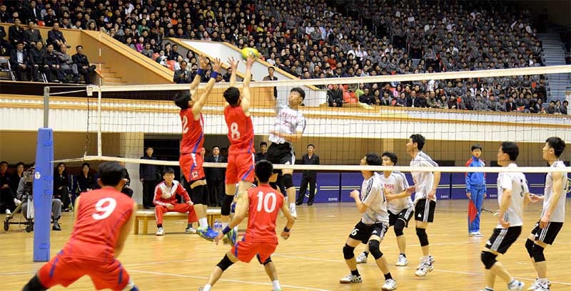 朝鮮のどこへ行ってみても、盛んな大衆スポーツ活動が目に止まります。作業の合間や休日、祝日ともなりますとサッカーやバレーボール、バスケットボール、テーブルテニス、テニスなど数々のスポーツ活動が行われます。