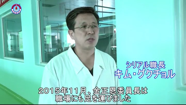「2015年11月、金正恩委員長は職場にも足を運びました。金正恩委員長は子供たちは騙せない、赤子も言葉はできないが味は知っていると言いました。そしてピョンヤン子供食品工場の製品の質の評価基準は子供に好まれるか否かにあると言いました」