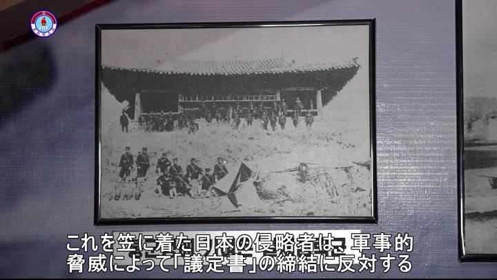 「日本は『韓日議定書』を締結して、朝鮮封建政府を掌中におさめ、自分の侵略政策の実現に有利な条件をつくろうとしました。当時、日露戦争を起こした日本は、戦争を口実にして朝鮮に膨大な侵略武力を駐屯させていました。これを笠に着た日本の侵略者は、軍事的脅威によって『議定書』の締結に反対する朝鮮封建政府の官吏を取り除き、『韓日議定書』を強制締結しました」