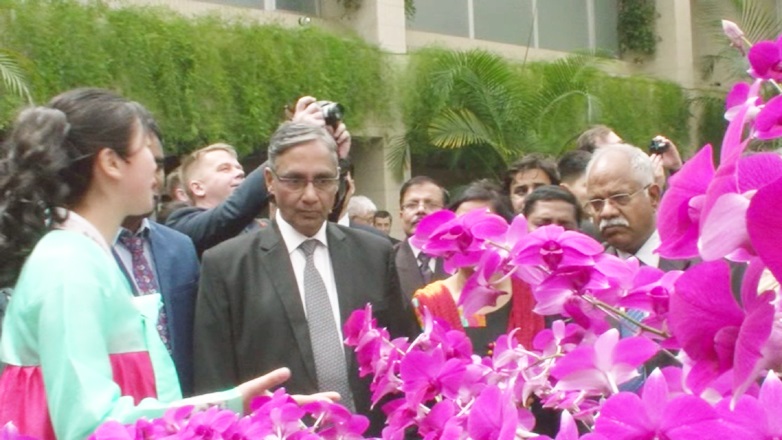 「金日成主席の生誕106周年に際して訪朝したことを嬉しく思っています。この花はとても美しく、金日成主席の風格を完璧に代表しています。この花は主席を象徴しています。金日成花を見るたびに、主席を思い出します。金日成主席は私たちの心の中に生きています」