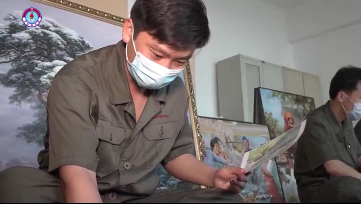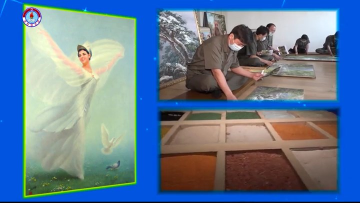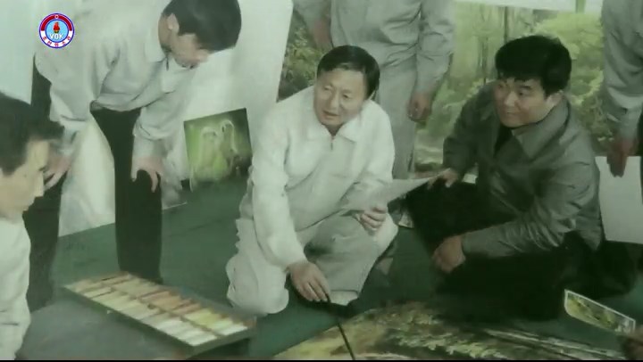 「美術家が調色したような優雅で上品なこのカラー石なら、いくらでも絵を描けると思いました。その時から、カラー石で絵を描くための研究を始め、数点の絵も完成しました。しかそ、それが絵画の1つのジャンルになるとは考え及びませんでした。1988年8月、偉大な金正日総書記は石の粉で描いた絵を見て顔料がとても素晴らしい、こうした絵のジャンルはどの国にもない、新しいジャンルだとし、これを発展させる方向と方途まで示しました。その後、マンスデ創作社に専門スタッフを設けるようにし、朝鮮宝石画と命名しました。そして数回にわたって作品を指導しました。こうして朝鮮宝石画は奇跡のような発展を遂げました」