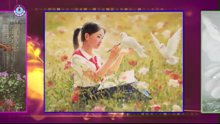 朝鮮画(一覧)万寿台創作社朝鮮宝石画「鳩の舞」偉人の下で生まれた朝鮮宝石画