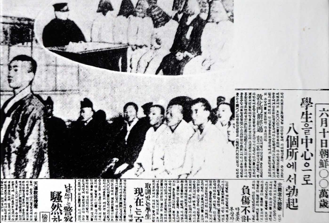 1926年4月、朝鮮封建王朝の最後の皇帝スンジョン*1の死は、朝鮮人民の反日感情を強く刺激しました。朝鮮人民の反日感情は高まり、当時キョンソン*2と呼ばれたソウルでスンジョンの葬儀を機に反日示威が準備されていました。これを察知した日本は、示威闘争の弾圧へと出ました。