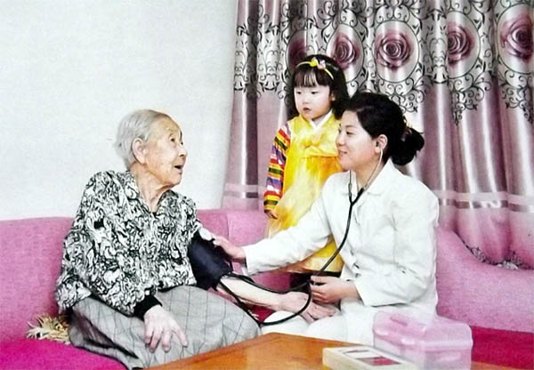 無料治療制のおかげで、朝鮮人民は無病長寿を謳歌し、幸せに暮らしています。