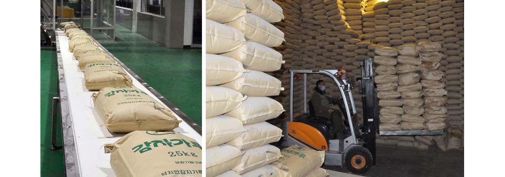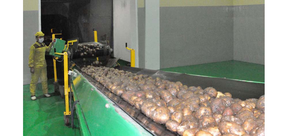 そして、製品固有の味を生かすうえでの懸案も解決して、品質も一層向上させました。また、ジャガイモの貯蔵量が増えるにつれ、貯蔵庫の温度と湿度、炭酸ガスの濃度の自動測定及びコントロールシステムを導入して、ジャガイモの保管条件を改善しました。原料の投入から洗浄、選別、乾燥、包装など主な工程に先進技術が導入された工場の生産量は3年前に比べて倍以上伸びました。