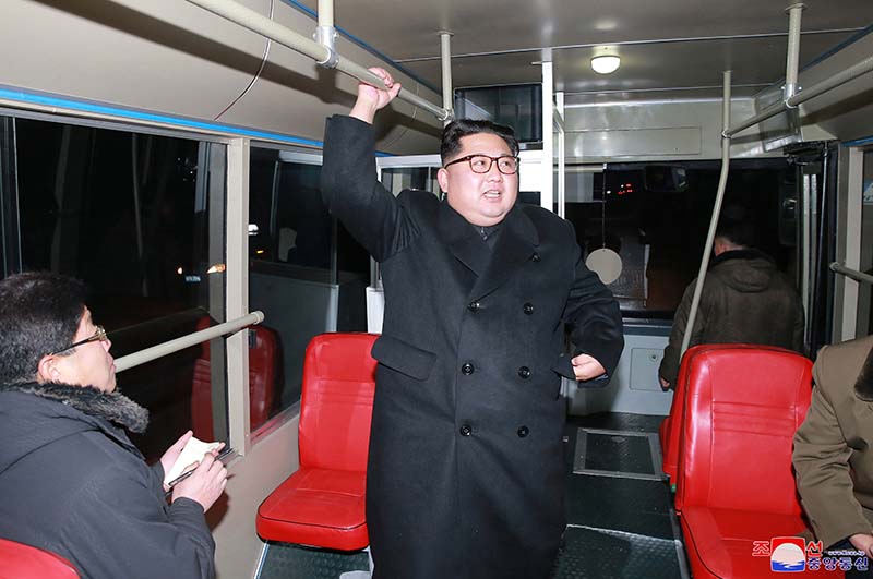 金正恩総書記はチュチェ107(2018)年2月初め、新型のトロリーバスの試運転も指導しました。その時も寒風が吹く真冬の深夜でした。