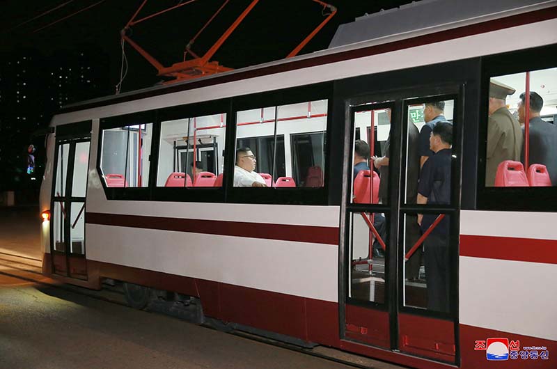 真夜中の試運転はその年の8月3日にも続きました。この日、金正恩総書記は新型のトロリーバスと路面電車の試運転を指導しました。昼に新型のトロリーバスと路面電車を見ましたが、直接乗ってみなければと言って、貴い時間を割いたのでした。