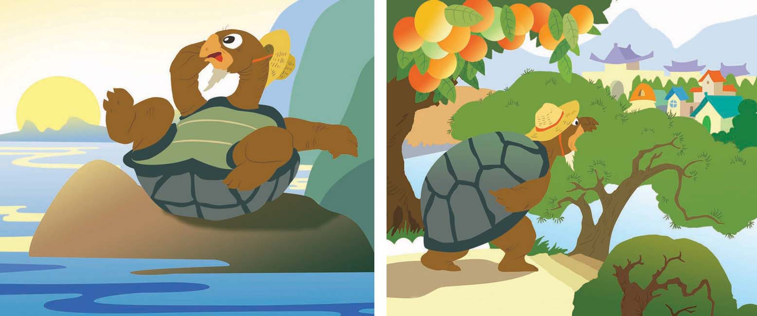 絵本「追い出された亀」はチュチェ101(2012)年に功労芸術家の称号を受けたチャン・ウンソプさんと息子の児童知能教育図書研究所所長である功労記者の称号を受けたチャン・デギルさんの合作によるものです。