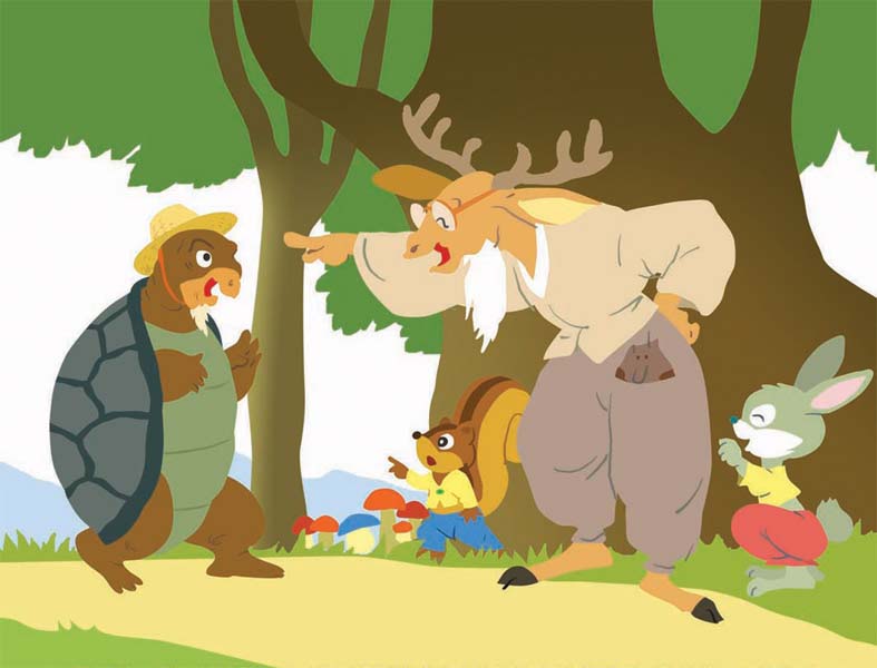 そして、狼の奴が遣わした回し者じゃないかと思い、早く大人たちに知らせることにしました。ウサギが鹿のお爺さんに駆けつけました。