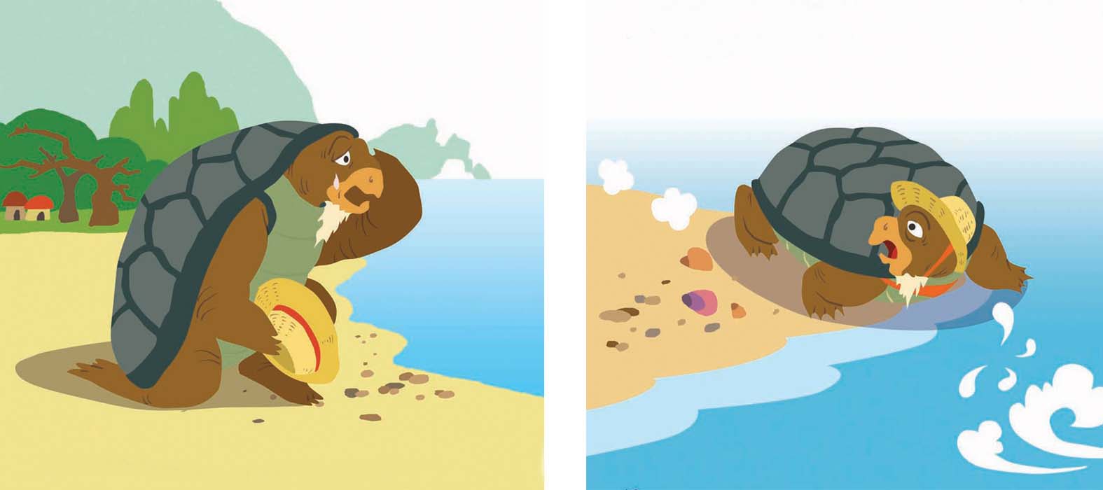 一年が経ち、眠りから覚めた亀はうって変わった村を見てひねくれたことを言いました。