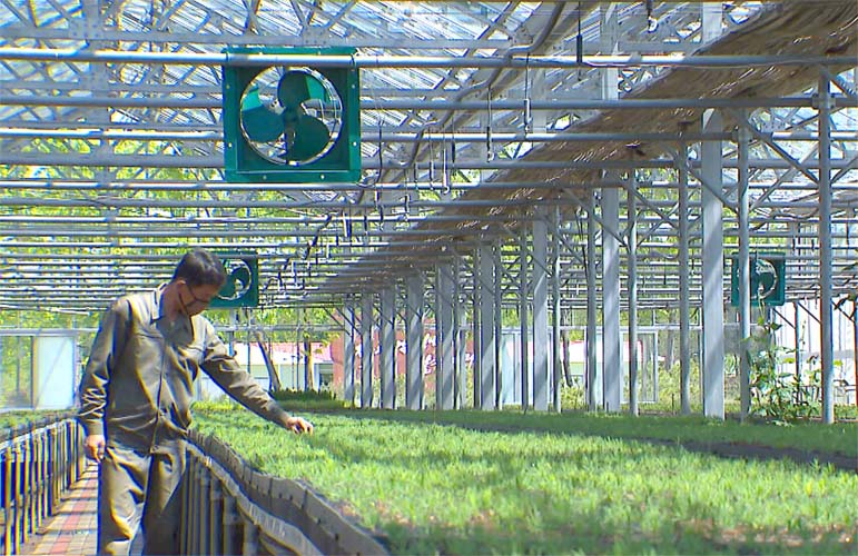 ここの研究者は、生育条件を最適化する方法を研究して、従来より省力を図りながらハウスで苗木の生産を年に2回できる展望を開きました。そして、活着率を高めるなど季節に拘りなく木を植える条件を揃え、国内に豊かな原料で効能の高い栄養強化剤を開発して苗木の生産に取り入れています。