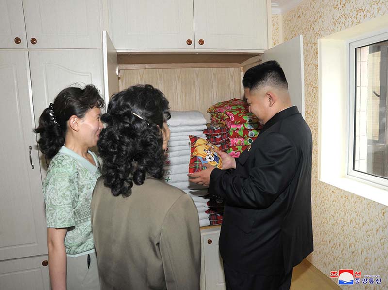 「2012年5月30日のことです。金正恩総書記は託児所の隅々まで見て部屋の温度加減も測り、寝具ダンスから枕を取り出して前と後ろを押しても見ました。また、屋内遊泳場で水遊びに戯れる子供たちの姿を描いて水槽の深さも測り、きれいだ、立派だと重ねて言いました。新築の託児所を誰よりも先に訪ねて愛情の限りを注いだ金正恩総書記でした」