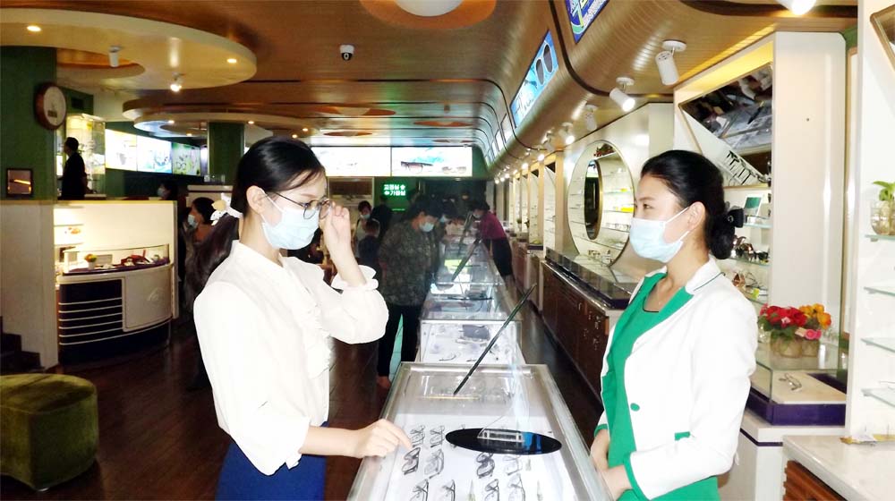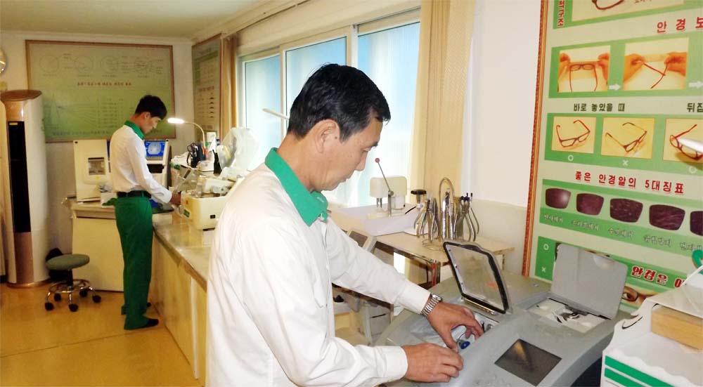 ピョンヤンにあるリュギョン眼科総合病院には眼鏡の矯正と製作などを専門にするリュギョン眼鏡ショップがあります。眼鏡とその部品、光学機器を買い求める来客のニーズに十分応えるショップですが、オープン早々から来客でにぎわっています。