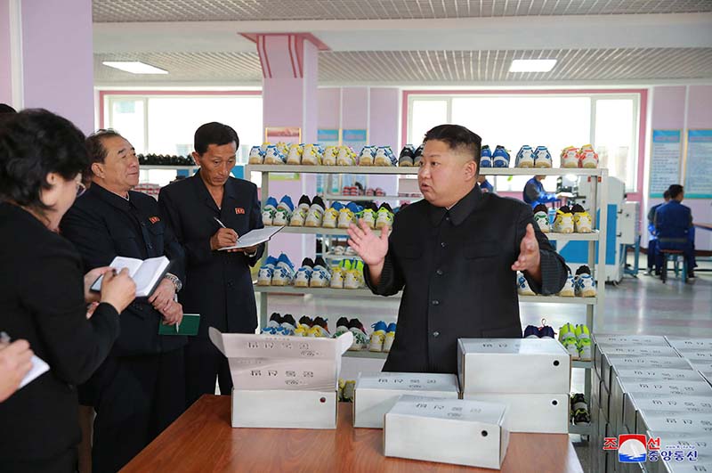 この日、工場で開発した新製品を一つ一つ見ていた総書記は、普通の運動靴はほとんど、紐を締めることになっているが、便利なように革靴の形やマジックテープのものも造らなければならない、非典型的、局部的で特定の部類に属する運動靴を基本に生産するのでなく、人民の誰もが利用する運動靴を基本に生産しなければならない、と念を押しました。