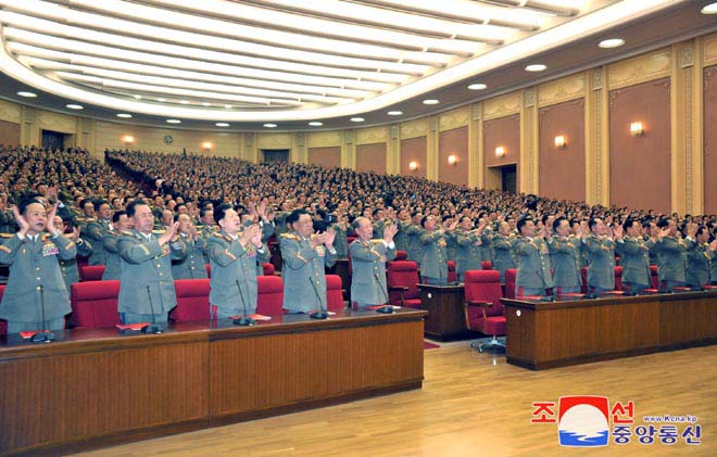 金正恩委員長はこの固い意志をチュチェ101(2012)年4月11日に開かれた朝鮮労働党第4回代表者会議で内外に厳かに宣言しました。代表者会議では、偉大な金日成・金正日主義を朝鮮労働党の永遠の指導思想に、全社会の金日成・金正日主義化を党の最高綱領に宣言しました。