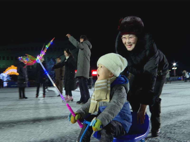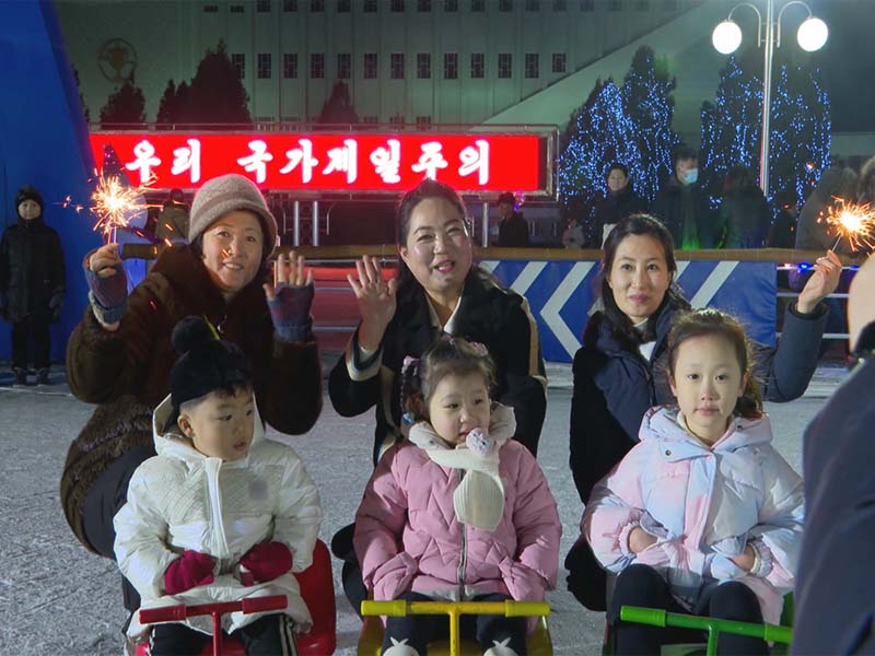 よりよい幸福を呼び寄せ、笑い声溢れる野外スケート場、銀盤の上に溢れる喜びは日増しに潤いを増す朝鮮人民の生活そのものです。