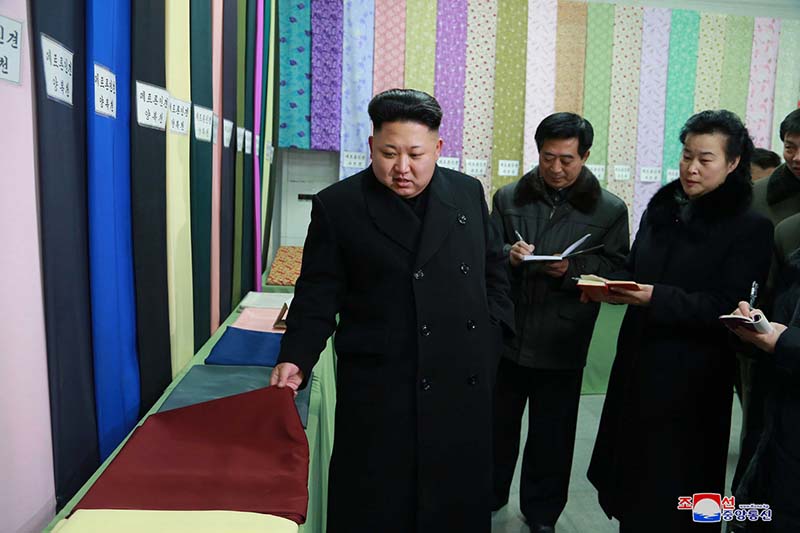「2013年10月12日、工場を訪れた金正恩総書記は、私は国中の生徒、学生皆に制服を作って着せようと思っている、そのためにはこの工場で生地の生産に精を出さなければならないと言いました。総書記は2014年12月19日、再び工場を訪れ、制服用の生地を一つ一つ見て、生徒、学生に制服を着せるのは労働党が一貫して堅持してきた政策である、これはお金があればやり、なければ止めても良いということではなく、何が何でも必ずやり遂げなければならないことだと言いました」
