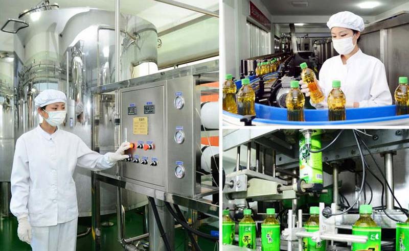 敬愛する金正恩総書記は人民が好む茶の生産を増やすためその栽培面積を年次別に増やすことを指示し、人民がいつ、どこでも気軽に飲める茶飲料を生産する工場を立派に建設するよう措置を取りました。こうして昨年に建てられたウンジョン茶飲料工場では味と香り、色がユニークな緑茶、紅茶、鉄観音茶の飲料が生産されていますが、大人気です。