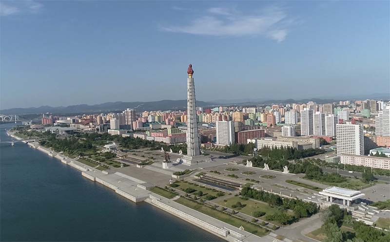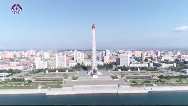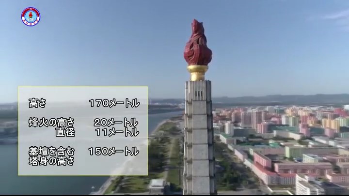 平壌の都心を流れる大同川*1の岸辺に聳えるチュチェ思想塔です。偉大な金日成主席の生誕70周年に際してチュチェ71年(1982)4月15日に建てられました。チュチェ思想塔は朝鮮人民の自主性を象徴するモニュメンタルな建造物です。