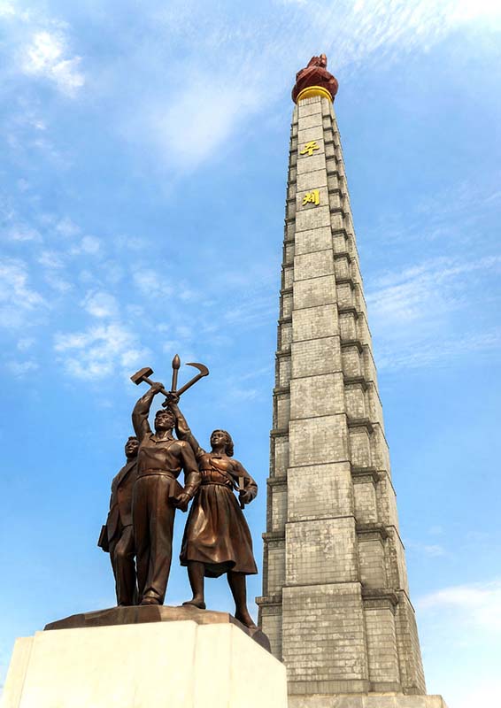 チュチェ思想塔は金日成主席の偉大さと不滅の革命的業績を末長く伝えるモニュメンタルな建造物です。