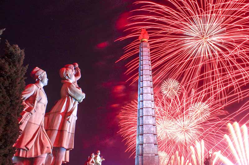 チュチェ思想塔は不滅のチュチェ思想を創始した偉大な金日成主席の革命的業績を伝えています。