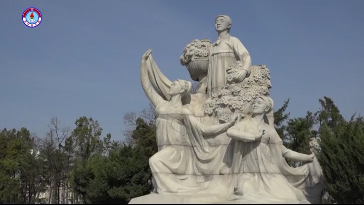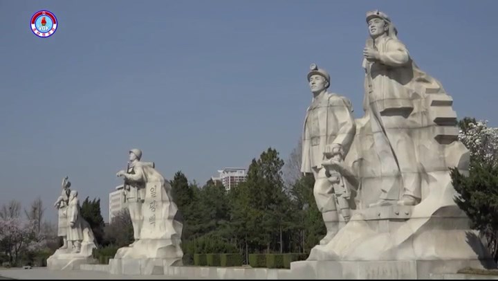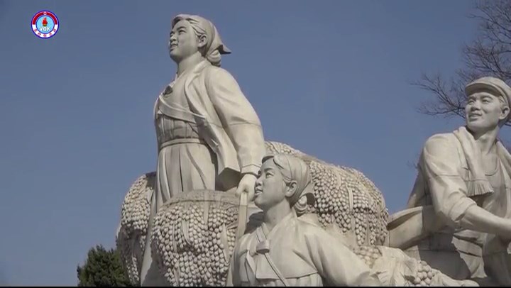 チュチェ思想塔を中心として左右に6つのサブテーマの群像が建てられています。これらの群像は希望と自信に満ちて甲斐ある生活を営む人民の姿を通じて、チュチェ思想の偉大な生命力と勝利を見せています。