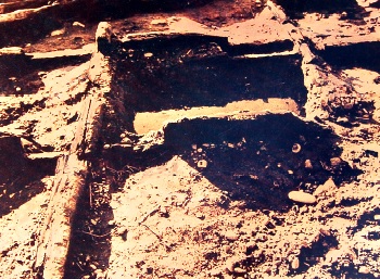 テドン川のコグリョ時代の木造の橋には付帯施設もありました。橋の入り口の東側ではしっかり固めた地盤に井桁の形で組み上げたともし火の台も発見されました。これは夜、ともし火をつけて道を照らしたことを意味します。