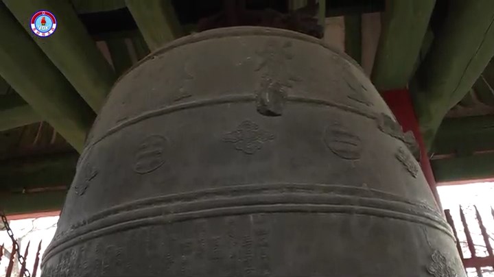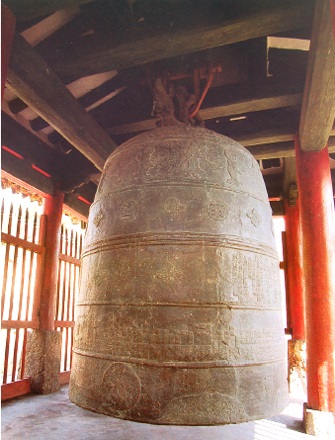 この鐘は1726年6月から9月にかけて作った物です。重さ12トン914キログラム、高さ3.1メートル、口径1.6メートルです。鐘には仏像と四天王の像、雲の文様、鐘の名等が刻まれています。