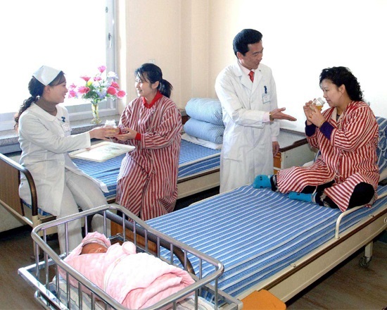 共和国のどこでも同じようにここ産院でも女性みなが無料で医療ケアを受けています。女性の健康増進にいつも深い関心を向けていた偉大な金正日総書記は現代的な産院を建設し、ここで産婦に蜂蜜を切らさず供給する措置を講じました。
