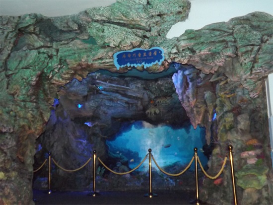 「2012年6月、イルカ館にまたもや出向いた金正恩委員長は、イルカ館を非の打ち所がないものに造るための詳しいことを教えました。2階に設けられた水中トンネル状の科学技術普及室だけを見てもそうです。当時、水中トンネル状の科学技術普及室には、魚の水槽を設置しようとしたところもありました。金正恩委員長は、科学技術普及室らしく、水槽でなく、テレビを据え付けて、多種多様の魚の活動の模様と海の世界を編集して放映すべきだと言いました」