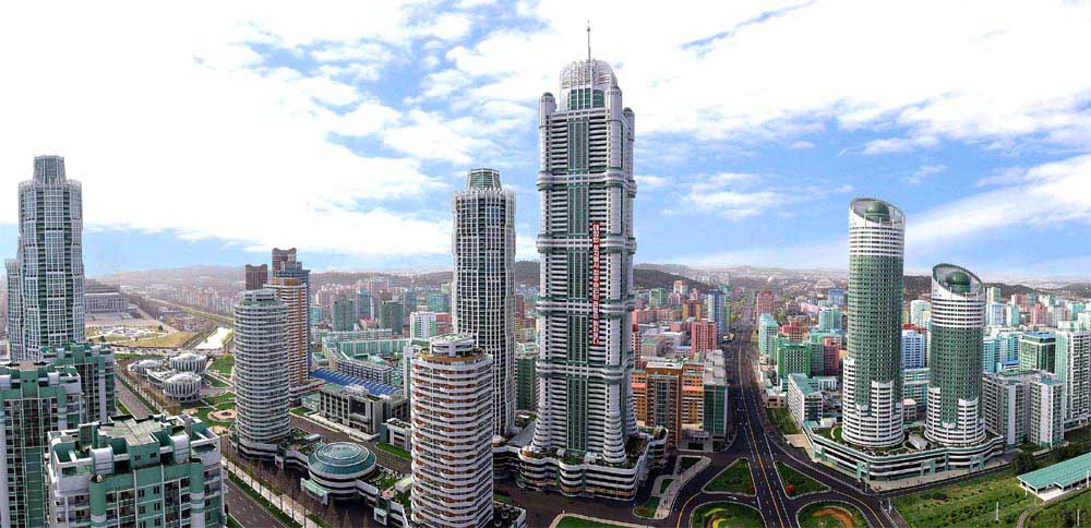 ピョンヤンでは、ソンシン、ソンファ地区に1万世帯の住宅が、ポトン川の辺に800世帯の階段状の住宅エリアが建てられています。北部のコムドク地区では、山岳峡谷都市の建設が推進中です。