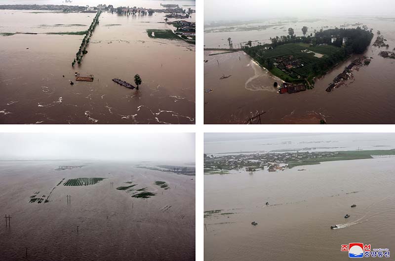 アムノク川の下流に位置するシンイジュ市とイジュ郡ではおよそ4100世帯余りの住宅と3000ヘクタール近くの農地を始め、多くの公共建物と施設、道路、線路が浸水されました。