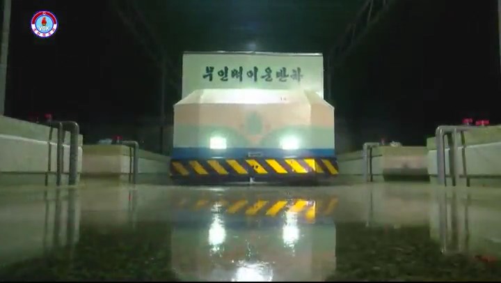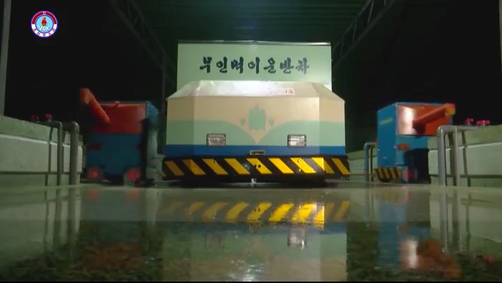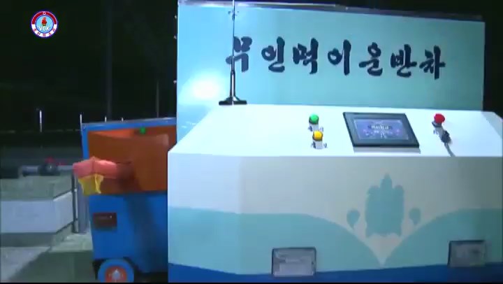 その作業振りを長い事見つめていた総書記は、「奇抜なアイデアだ。国家科学院の第111号製作所の科学者が自分の方式で餌の無人供給機を開発したのは誇るに足る事だ」と高く評価しました。そして製作所の人達の心中を推し量って、「写真を撮ろう。どうせ撮るなら餌の無人運搬車に書かれた『国家科学院第111号製作所』という文字が写るように撮ろう」と言いました。