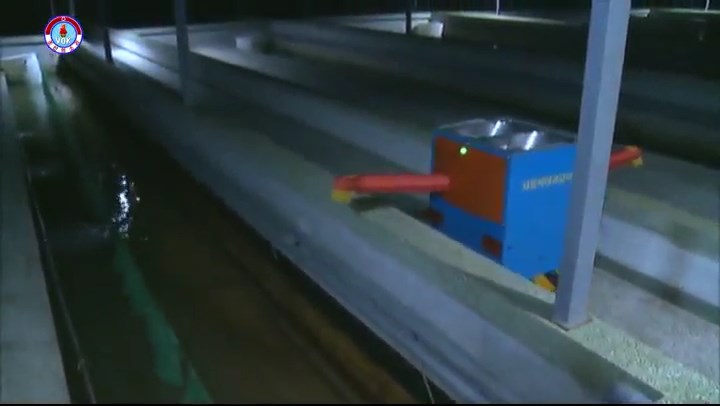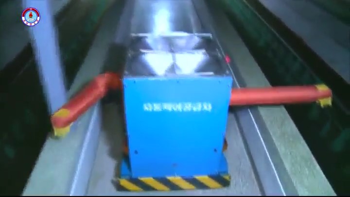 屋内の養殖場で総書記は餌の無人供給機を見ました。国家科学院の第111号製作所の科学者が開発して工場で始めて導入した設備でした。眼でも付いているのか障害物まで避けて通り餌の自動供給を行なう賢い物でした。