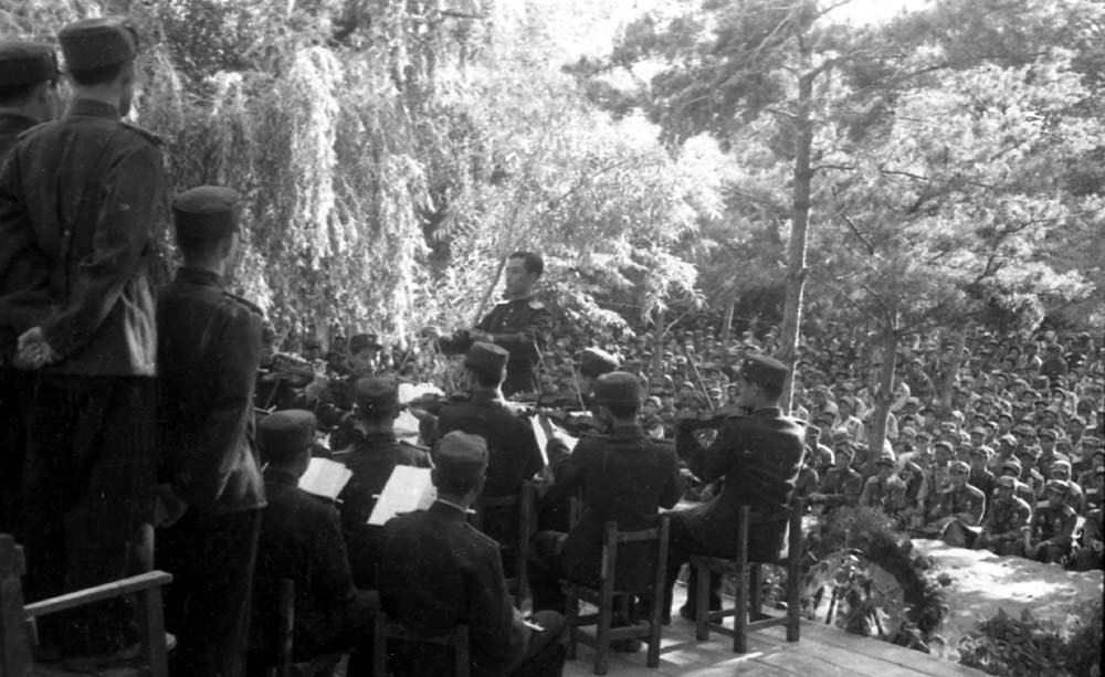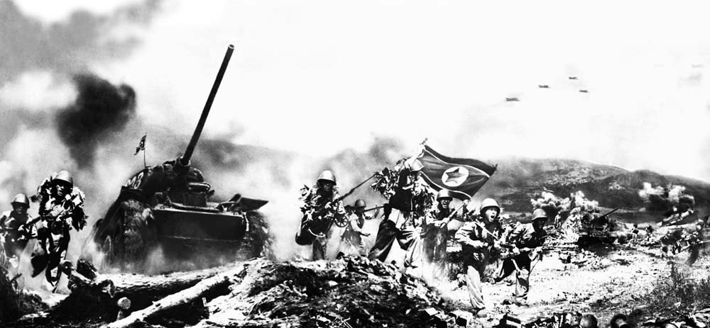 偉大な金日成主席は敵の武力侵略を即時挫折させ、いち早く反撃に移ることについての戦争第1段階の戦略的路線を示し、翌日は歴史的な放送演説を通してアメリカとその手先をこの地で殲滅するための聖なる闘いに全党、全軍、全人民が奮起することを呼びかけました。そして戦争の各段階で正しい戦略的戦術的路線を示し、その実現のための色々な戦法を編み出して、いたるところで大きな勝利を収めるようにしました。