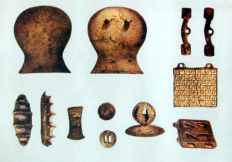 考古学的に早い時期の遺跡には、琵琶型短剣をはじめ青銅製の武器類と労働道具、土器、馬具類、装身具などがあります。