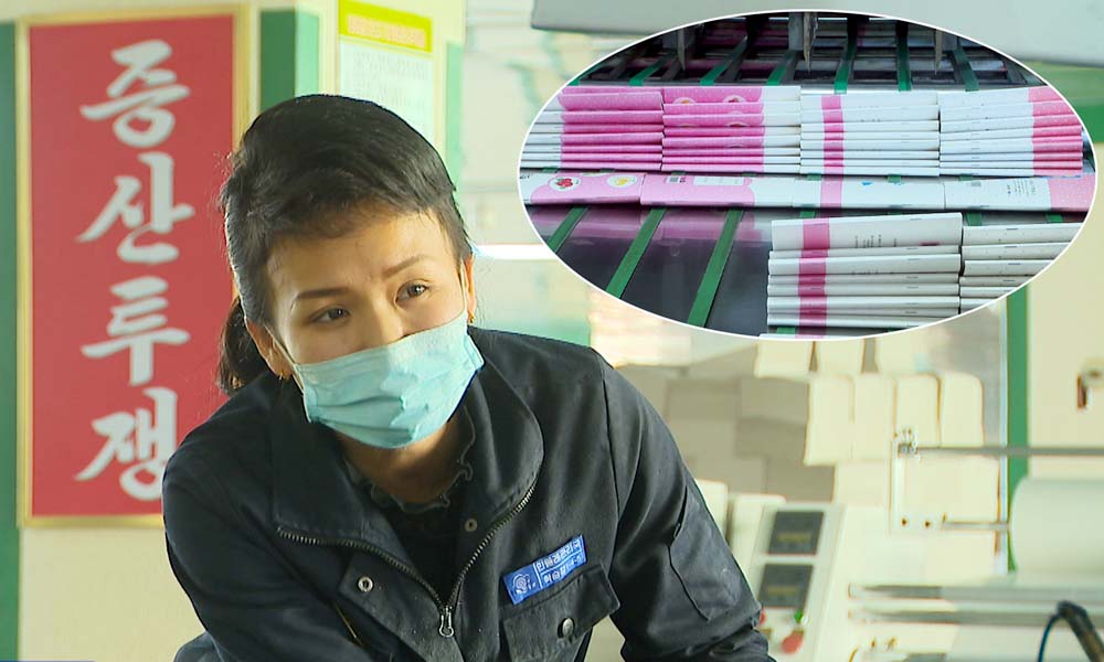 「今年に入って生産したノートをいの一番に国中の革命学院と初等学院、中等学院、島の子供と生徒に送っています」