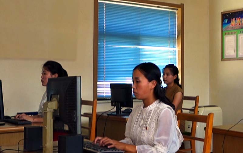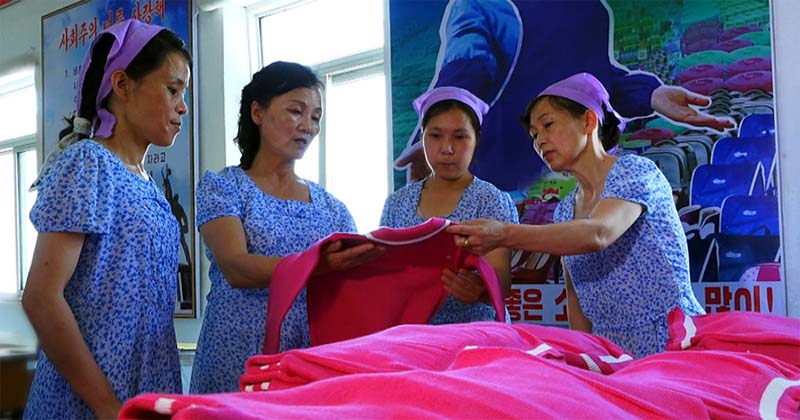 ニットウェアの開発と生産で得た成果を大切にし、さらに拡大するため励んでいるピョンヤン子供ニット工場の従業員です。