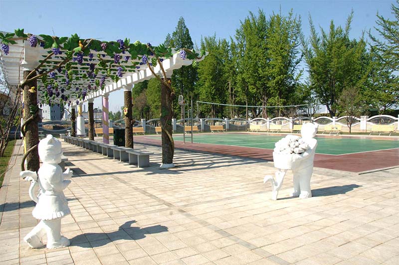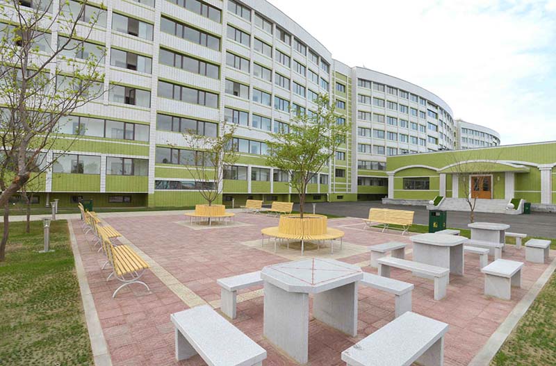 ここは朝鮮の紡織工業部門で大役を果たしている金正淑ピョンヤン紡織工場の労働者の寮です。80年に近い工場の歴史と共に寮の姿も日増しに一新しました。この寮はチュチェ103(2014)年5月に竣工しました。この寮が建てられたのにはいわれがあります。