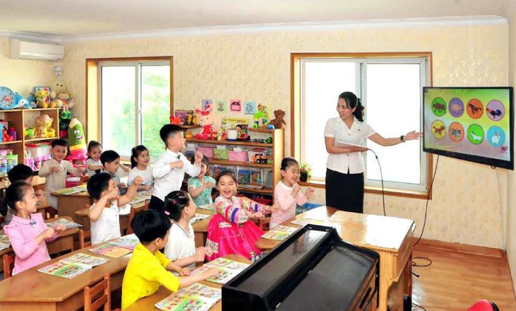 「教育委員会は最新の教育科学と教育技術が導入された朝鮮式の授業の方法を多く編み出して一般化することに力を入れました。今回、新たな電子教科書『親しい道連れ』を作って、国中の愛育院と幼稚園に普及し、子供の知能開発の教育の強化に大いに役立ちました。そして教育条件と環境を一新することにも力が入れられ、全国的なモデル学校、幼稚園が増えました」
