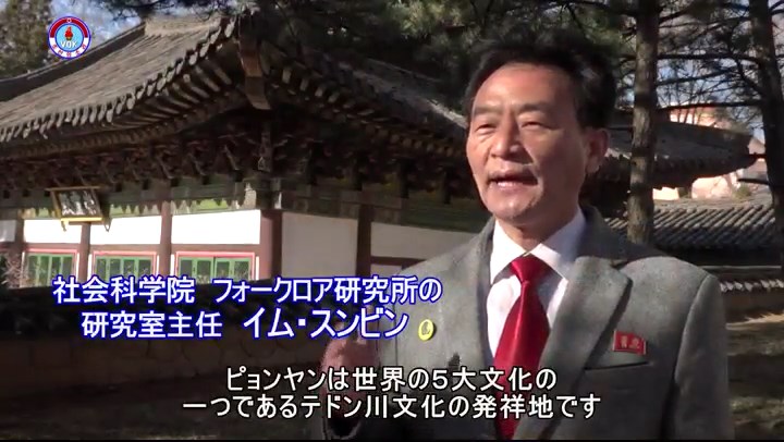 「ピョンヤンは世界の5大文化の一つであるテドン川文化の発祥地です。こうした歴史的なところで朝鮮民族の元祖であるタングンが生まれました。このような歴史的事実はピョンヤン市*2カンドン郡*3にあるタングン王陵から出土したタングンの遺骨と、周辺一帯で同時に発掘された旧石器時代の遺物、新石器時代の遺物、青銅器時代の遺物を通じてもよく分かります」