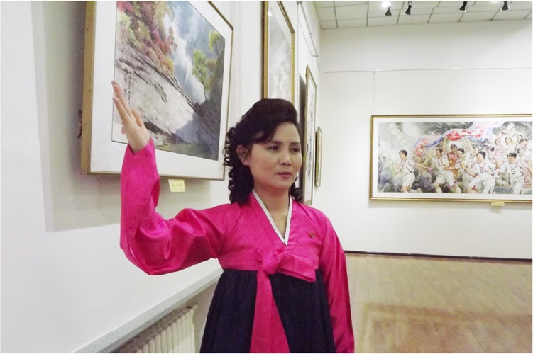 「ある日、出張先から帰ってきた父は、私の妹が見たくて幼稚園に行きました。妹と数人の友達が歌も歌い、踊りもして楽しく遊んでいました。『われらの父は金日成元帥 わが家は党の胸』こう歌っている子供たちを見て、父は金日成元帥は子供たちを一番愛し、国の王様と呼んで、子供たちのためなら何も惜しまず、愛情の限りを尽くしている、また、子供たちは金日成元帥を父と呼び慕い、幸せに育っている、このような国が他にあるものか、と思ったと言います。インスピレーションが湧いて、私と妹、町の子供たちをモデルに絵を描きました」