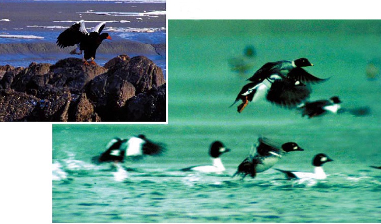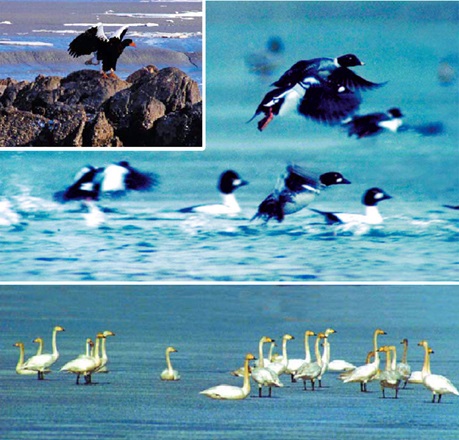 その他にも、カガン、コクガン、アカツクシガモとシギ類が長い旅の途中で翼を休め、オジロワシ、クロワシなどの渡り鳥のすみかとなっています。