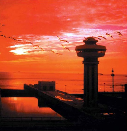 *2  大同江の河口には「西海閘門(ソヘカンムン、さいかいこうもん、서해갑문)」と呼ばれる巨大な河口ダムが建設されている。ダム湖内部は淡水化され、堤防上には鉄道(西海閘門線)と道路が作られ対岸同士を結び、南浦港に入る大型船が通るための閘門も複数設置されている。堤防は治水と水運・交通のために建設されたもので、1980年代に朝鮮人民軍などを投入して大々的に工事が進められ、1986年に完成した。この巨大工事は金正日の指導の賜物とされ、朝鮮中央放送のテレビニュースのバックにもしばしば登場している。(Wikipedia「南浦特別市」より抜粋)