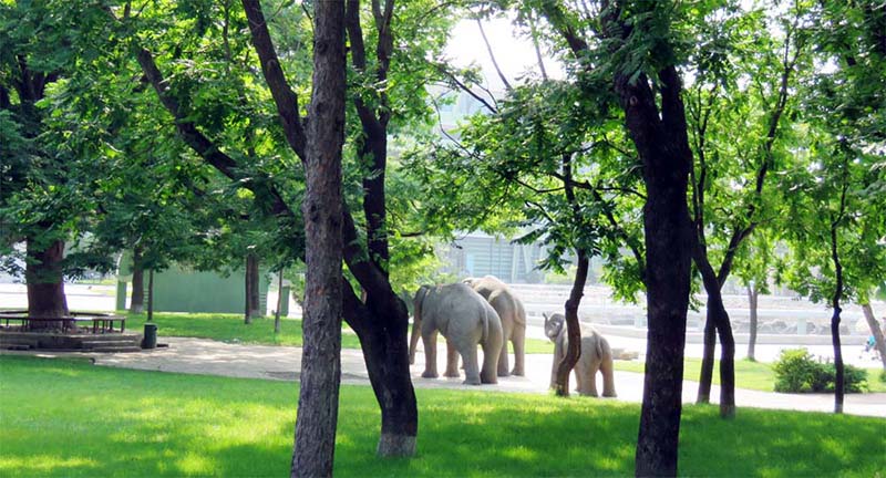 「園芸緑化の土台がつくられましたが、それを踏まえて、今年、動物園の正門と獣医病院、爬虫類館、熊の檻などの周辺に園芸景観を新しく造成しました。それだけでありません。オットセイの芸を見せるところと獣医病院、猿の遊び場の周辺に250本余りのイブキで生垣をつくり、動物園の正門とクマの檻、爬虫類館の周辺にはハリモミと小松林、ウツキのような10数種、数百本の木を植えました」