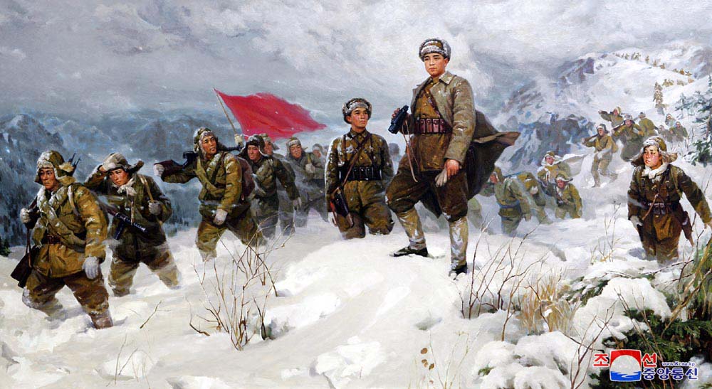 「1932年5月20日、朝鮮人民革命軍が創建されて初めての戦闘がありました。この戦闘で朝鮮人民革命軍は金日成主席の指揮の下に有利な地形を利用して、敵軍を一撃で撃滅する作戦を練り、待ち伏せ戦法で日本侵略軍にせん滅的打撃を与えました。不意打ちと敵軍の瓦解、敵の後方のかく乱、一行千里の戦術と旋回戦術など、抗日武装闘争の時、金日成主席が編み出した多くの遊撃戦法と戦術は、どの軍事教範にも見られない独創的なもので、史上初めて遊撃戦で侵略軍の正規戦を打ち破った百戦百勝の秘訣もそこにありました」