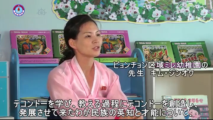 キムさんは幼稚園児のテコンドー教育のコンテンツと、テコンドー教育の手引書の制作にも参加しました。今、国中の幼稚園に普及している子供のテコンドーは、キムさんが朝鮮テコンドー委員会の師範と共に作ったものです。