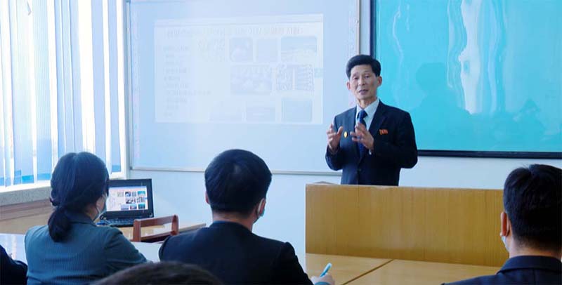 金日成総合大学の主任であるアカデミー会員候補、教授、博士のキム・リョンフンさんは、朝鮮で初めて地下超塩水による製塩方法を確立して、塩の生産の確実な見通しをつけた貫禄のある科学者です。