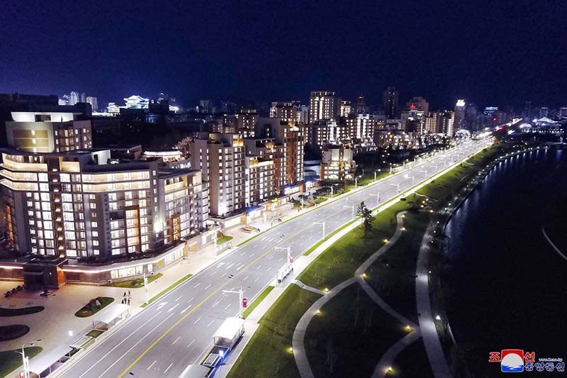 人民のための建造物でいっぱいのポトン川のほとり、東西南北のどこを見ても人民が願っていたすべてがここにあり、幸せの笑い声が高らかに響き渡っています。
